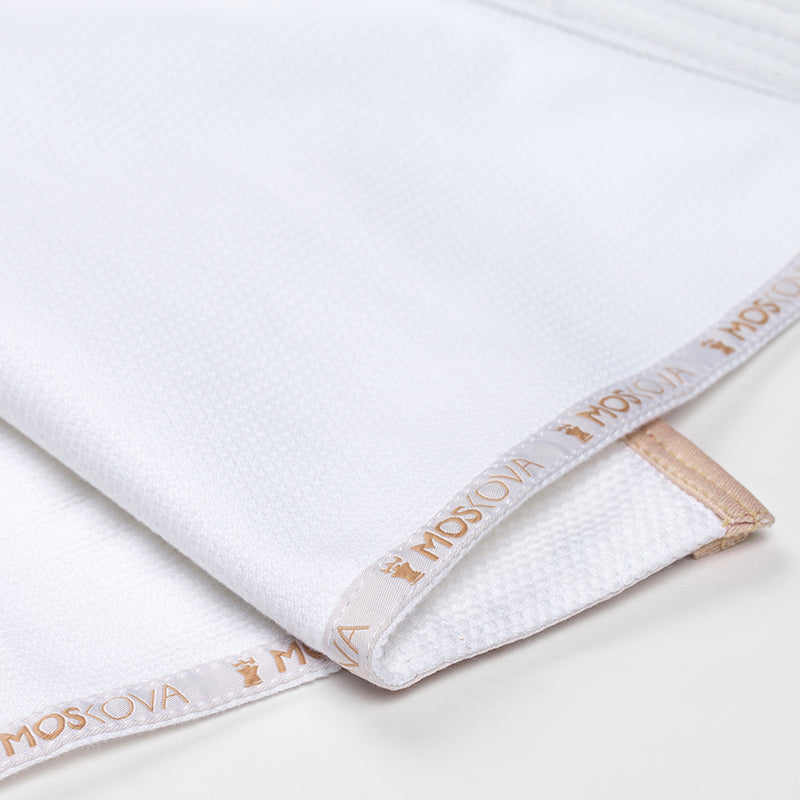The jacket is made of 100% cotton "Pearl Weave", it is a special weave that gives a so-called "pearl" finish that makes it softer but just as resistant. The jacket is 500 grms/yard which allows you to have a perfect kimono for training but also for competition.